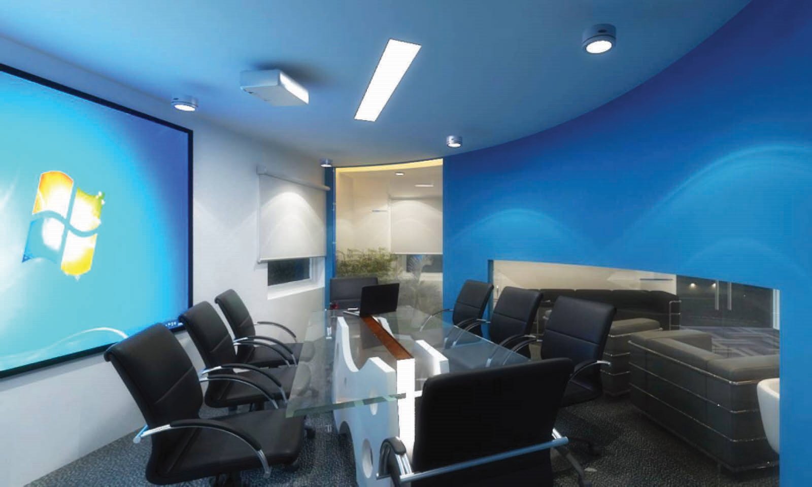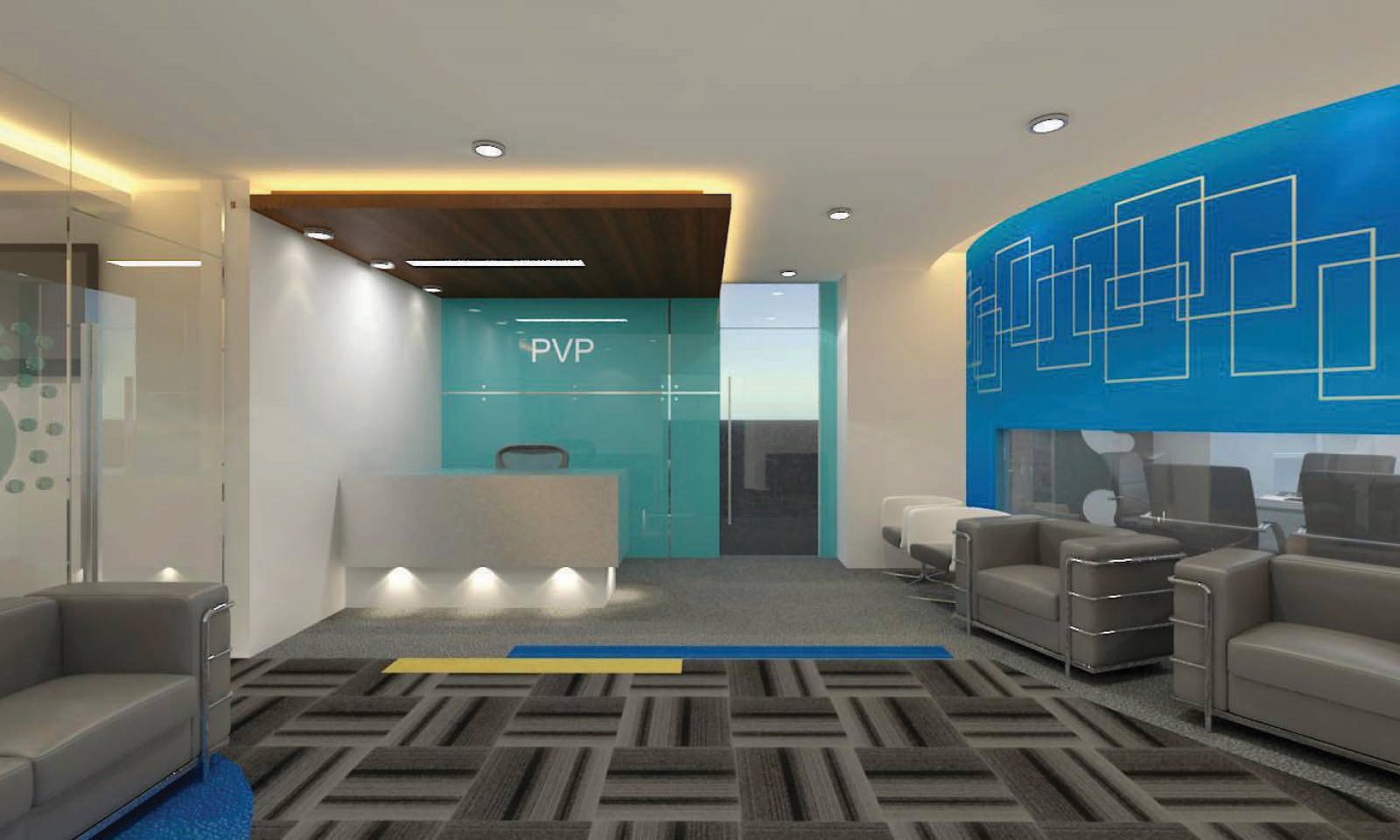 PVP Cinema office with area 0f 5300sft is a very successful tollywood film production house. The office accommodates 30 work stations and 11 cabins and meeting rooms and conference space with dining hall and kitchen.