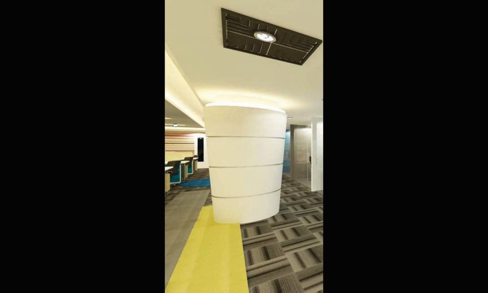 The project is an office space created out of an existing floor plate with its structural limitations.
