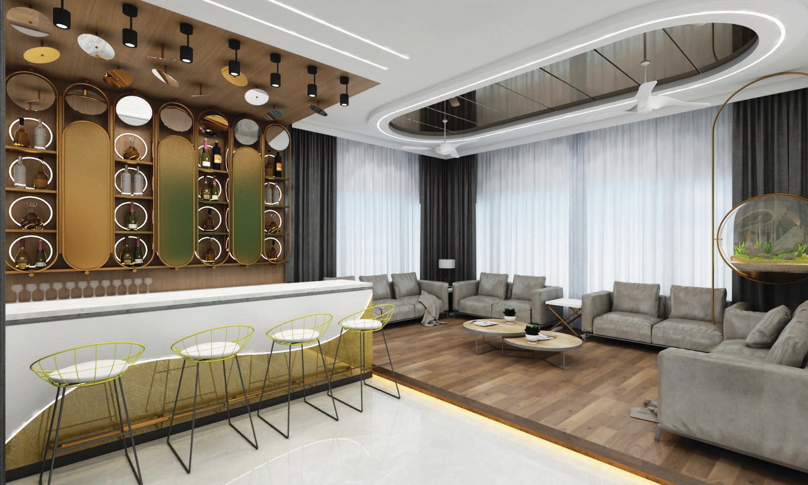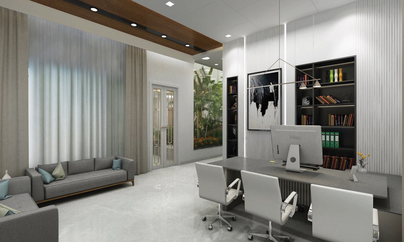 The client want a modern house with all the modern amenities. An big individual office space. Big open space infront of house for small gatherings.